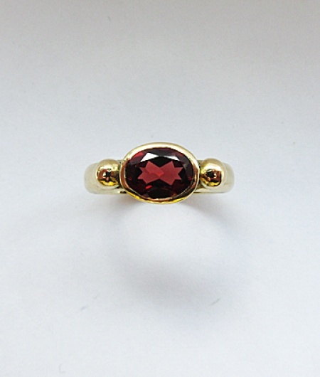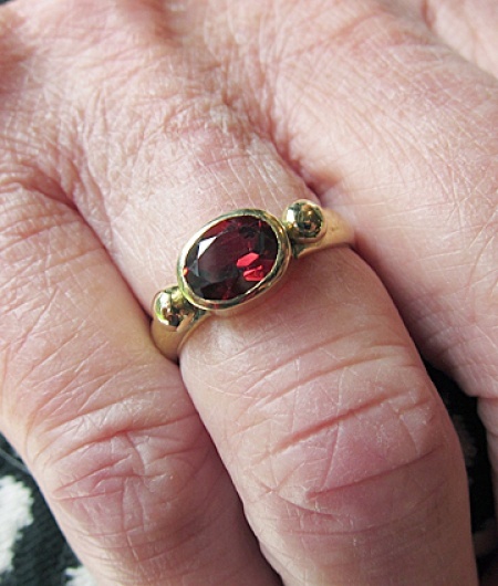 18k gold wedding ring converted into a ring with a garnet